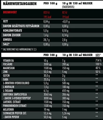 Schlaf und Regeneration sind zweifelsfrei eine wichtige Säule, wenn es darum geht, maximale Fortschritte im Gym zu machen. Zu selten wird ihnen jedoch die Beachtung geschenkt, die sie verdient haben. Das Rest in Peace wurde mit dem Gedanken designed, Schlafdauer- und Schlafqualität zu optimieren, um so das Maximum aus der nächtlichen Regenerationsphase herauszuholen. Die Inhaltsstoffe sind dafür so zusammengestellt, dass sie sich synergistisch in ihrer Wirkung unterstützen.